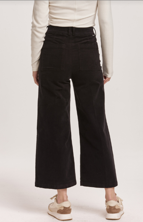 Audrey Super High Rise Cropped Wide Leg Pants - Black Corduroys