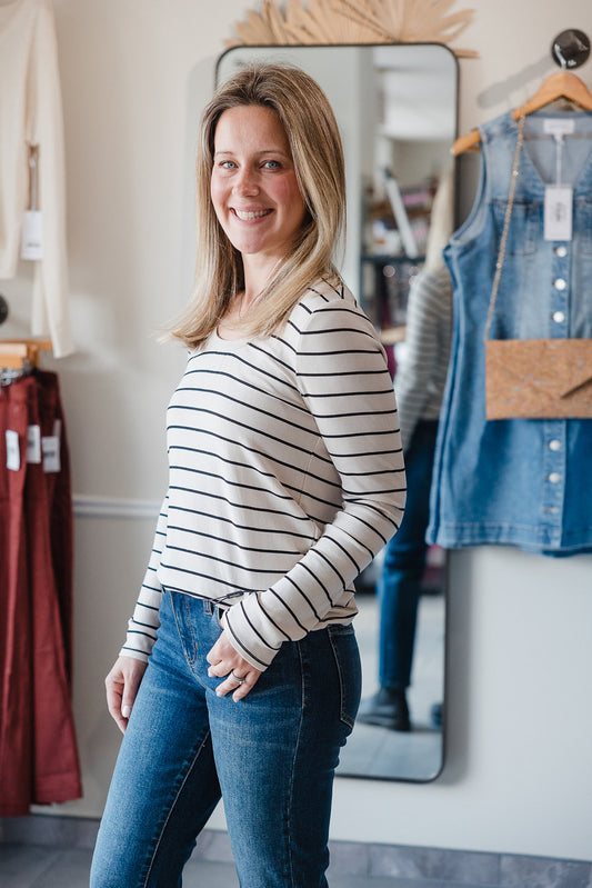 Lolita Button Up Long Sleeve Boyfriend Shirt - Rosebloom Stripe