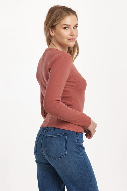 Long Sleeve Button Front Cardigan- Maroon Melange