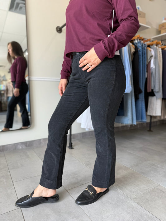 Jeanne Mid Rise Cropped Flare Pants - Black Corduroy