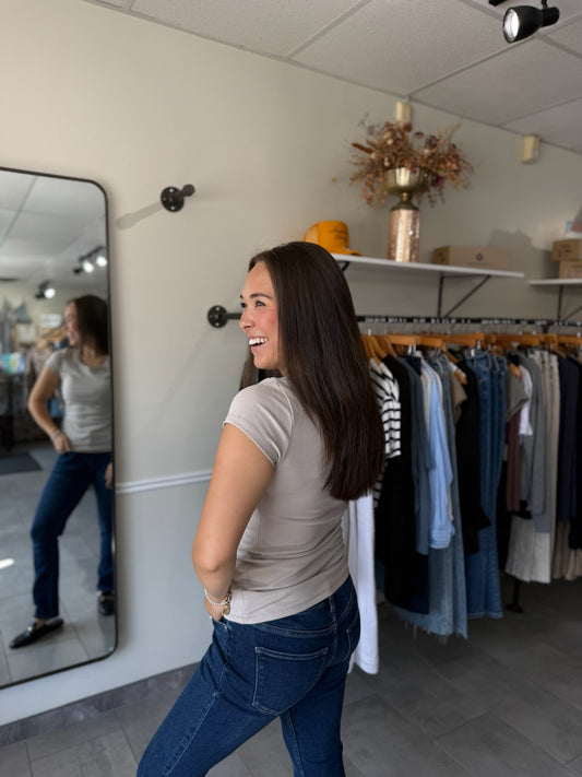 Seamless Reversible V-Neck Short Sleeve Top - Light Mocha
