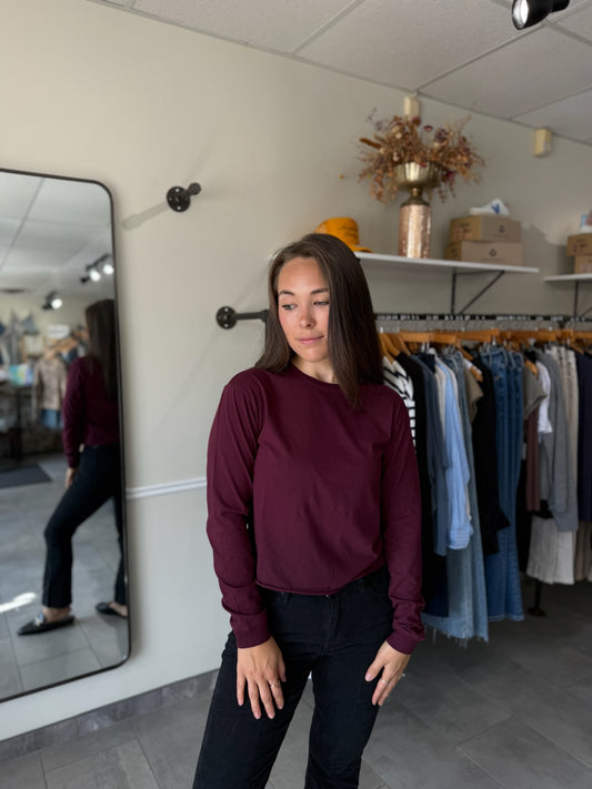 Long Sleeve Button Front Cardigan- Maroon Melange