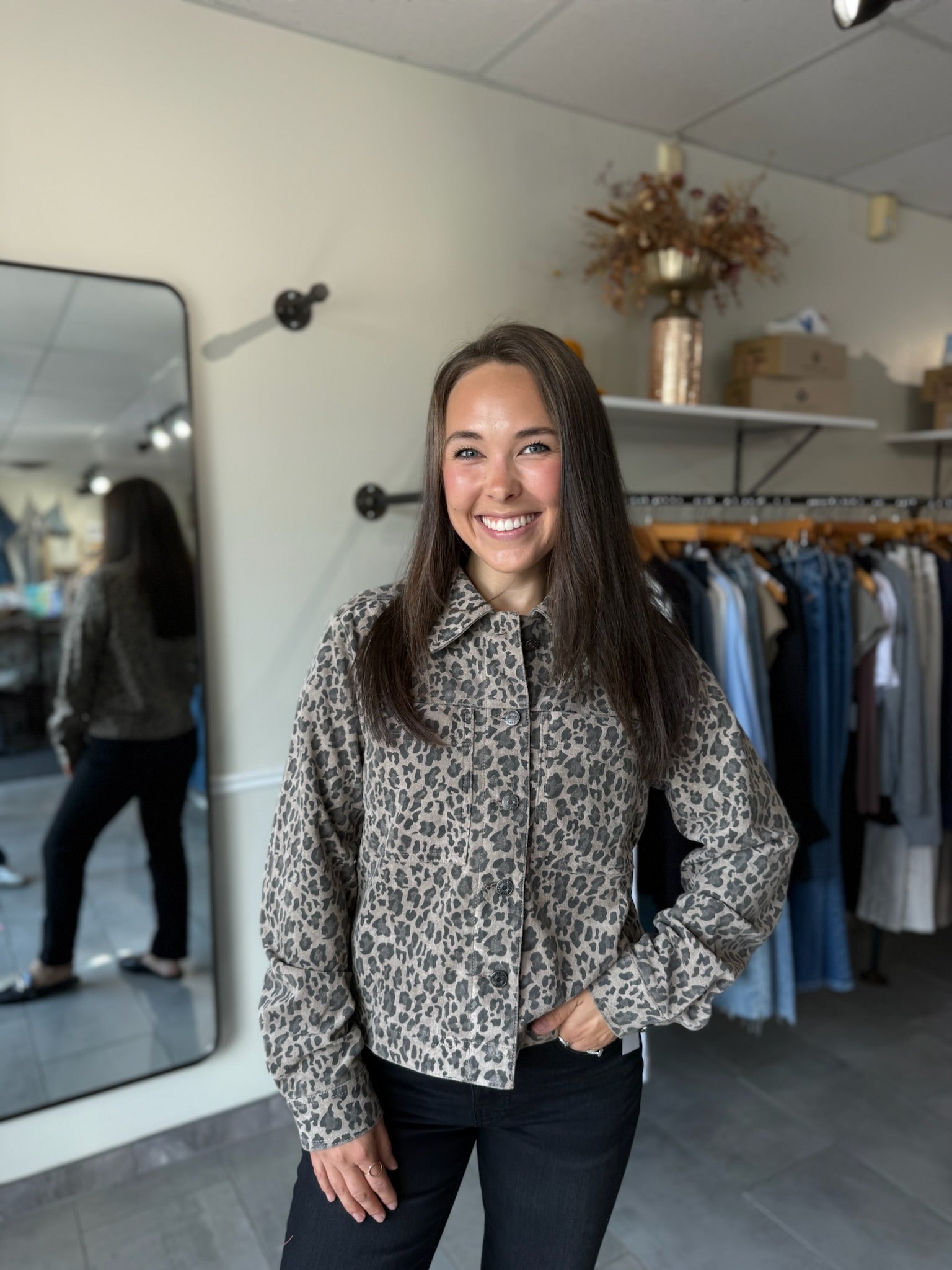 The Arya Shirt Jacket is a cozy, animal print layer made from 100% polyester, making it ideal for fall days. Its soft fabric offers warmth without bulk, perfect for throwing over your favorite outfits as the temperatures drop. This stylish piece adds a fun pattern to your wardrobe while keeping you comfortable all season long.