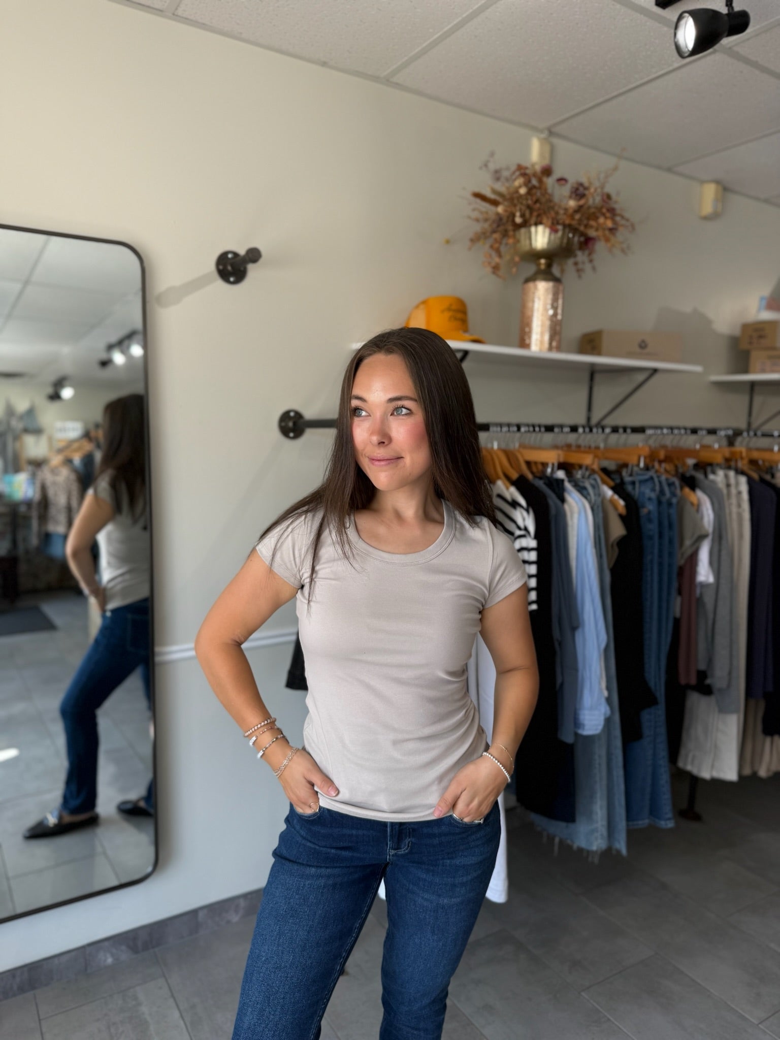 Cotton Rib Scoop Neck Short Sleeve T-shirt - Light Mocha