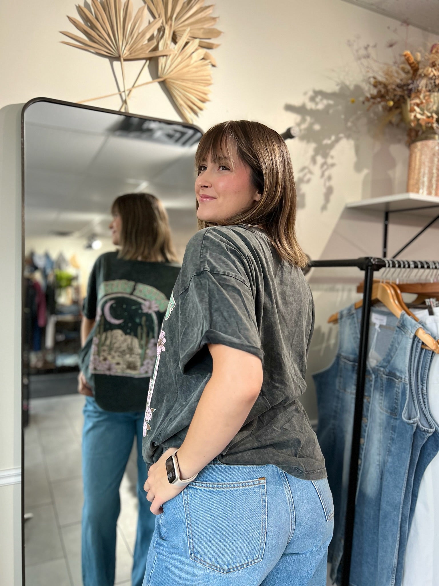 With its vintage wash and effortless style, the Desert Dreamer Graphic Tee is a wardrobe staple for any season.