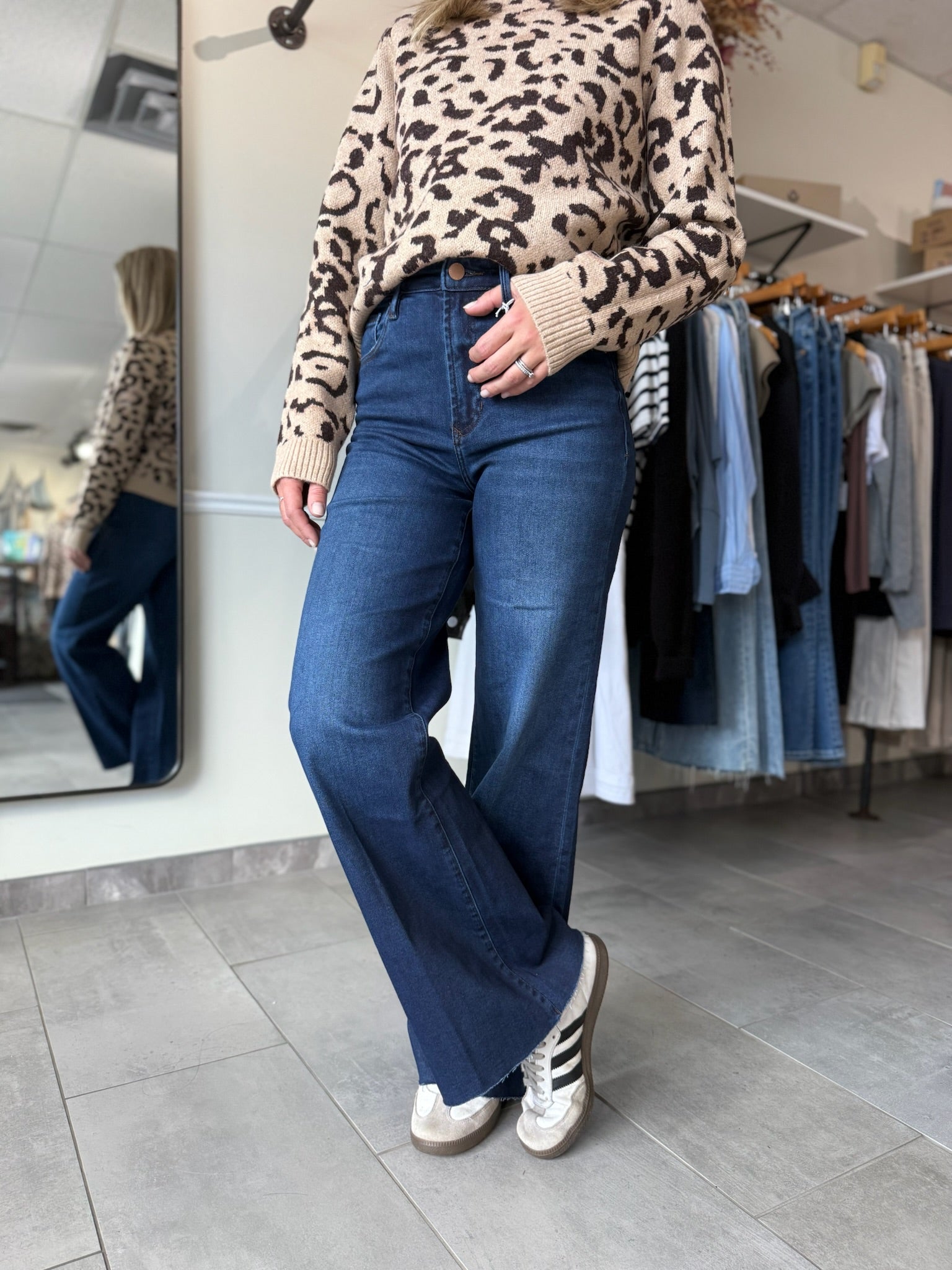 Sophisticated Dark Wash Denim | Fiona Wide Leg Jeans - Dark Knight