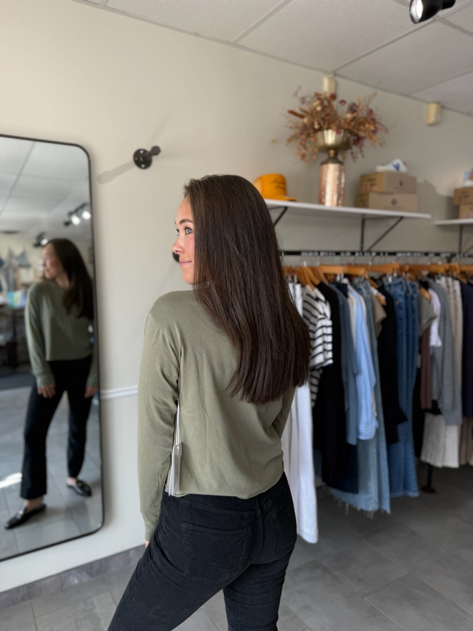 Featuring a chic crew neck and raw edge detailing, this top effortlessly combines timeless elegance with a modern twist, providing a go-to option for comfort for an elevated everyday look.