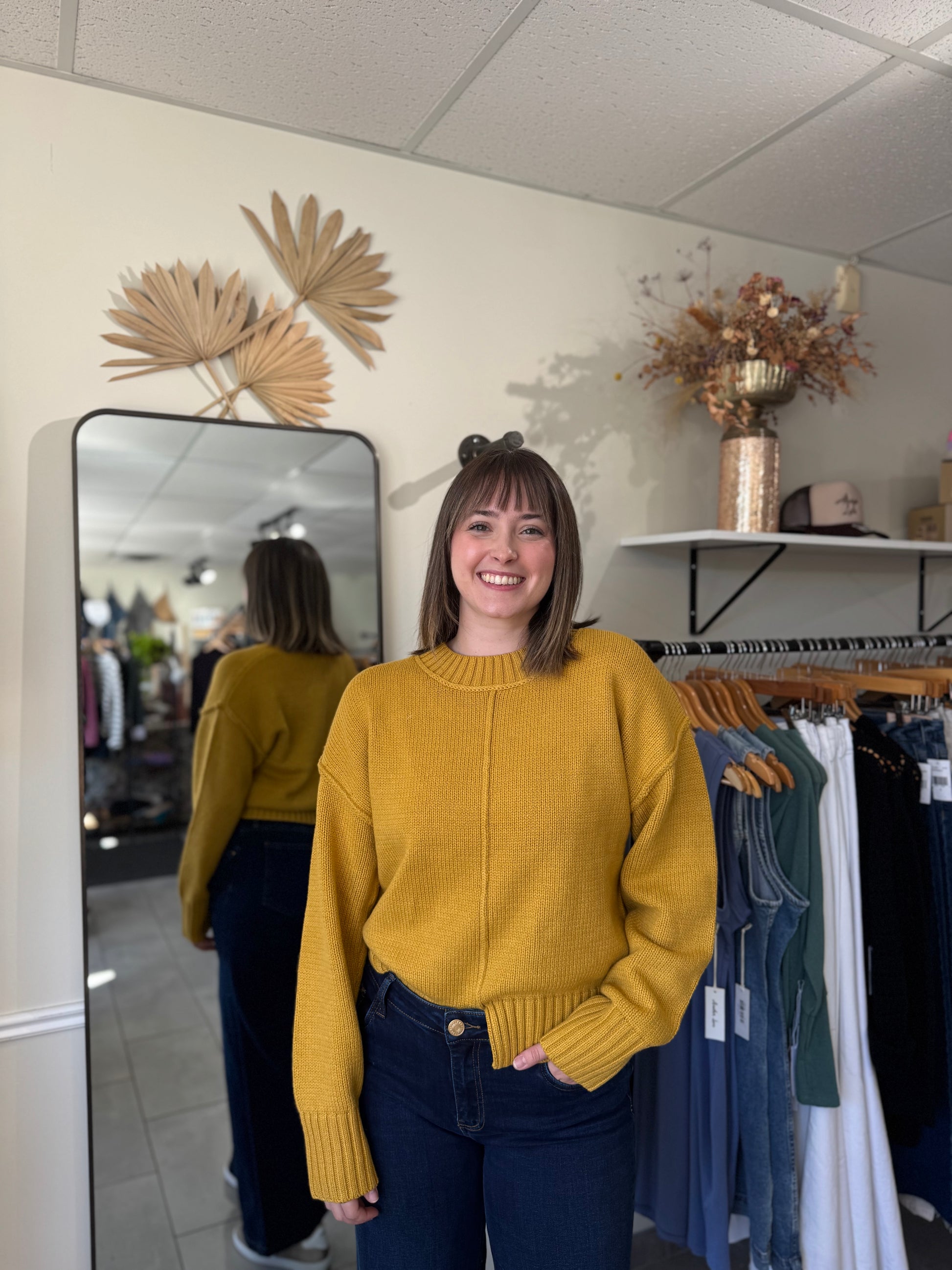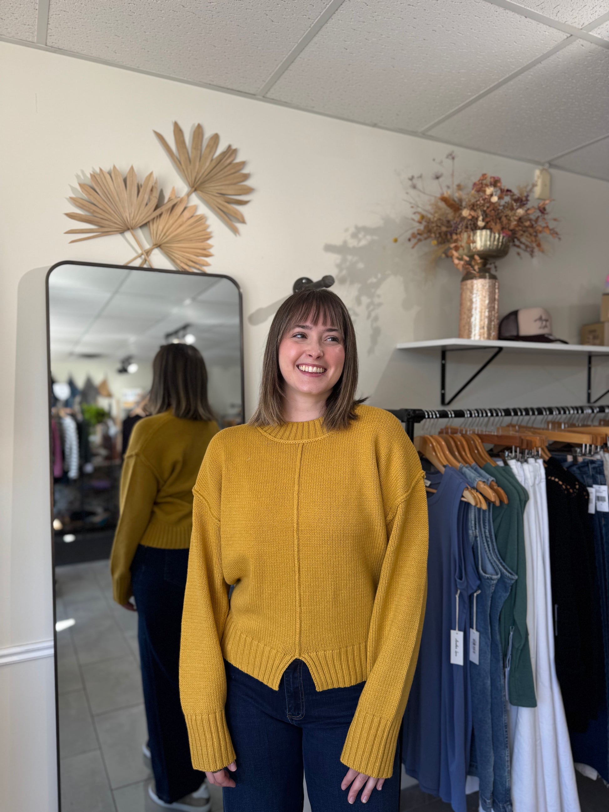 The Hera Sweater in Goldflake features a relaxed fit with a classic crew neck and long sleeves for comfortable everyday wear. Made from a soft blend of 60% cotton and 40% acrylic, it offers warmth without compromising breathability. The split hem adds a subtle stylish touch, making it perfect for layering or wearing on its own for a laid-back, casual look.