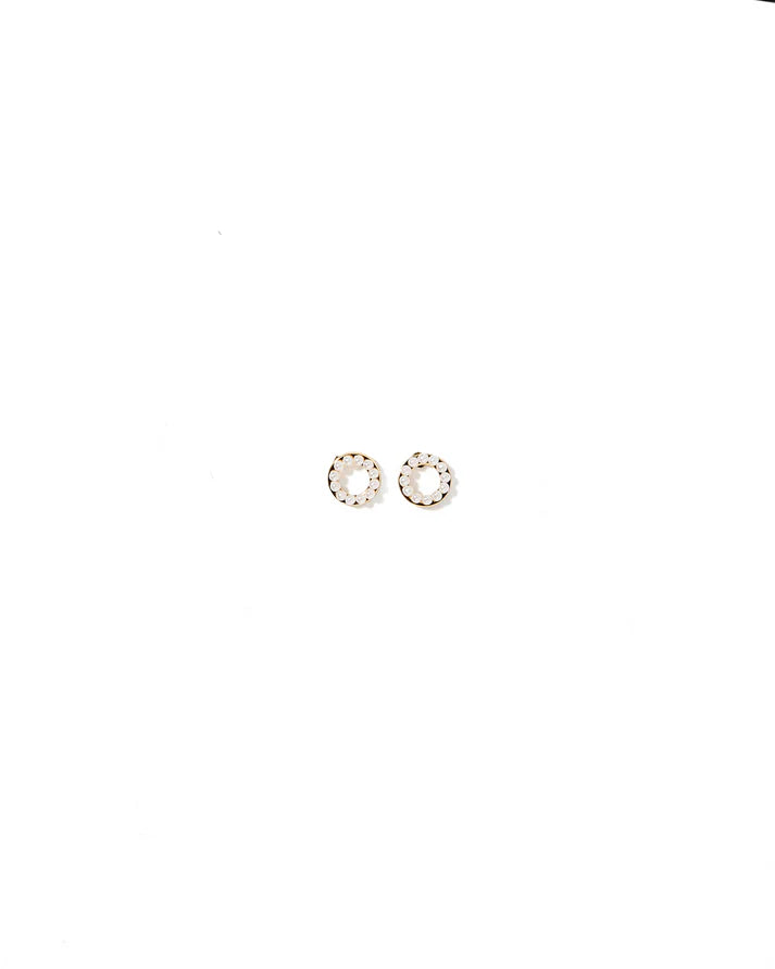 Style Description: A stainless steel stud in the shape of a circle with synthetic pearl accents. Measuring on the smaller side, it is 6mm in size.