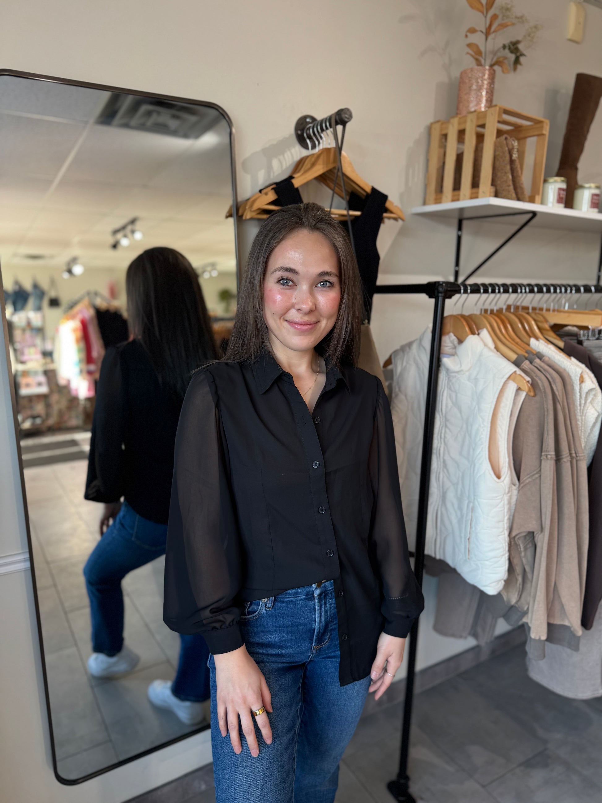 Increase quantity for Mabel Long Sleeve Button Down | Black