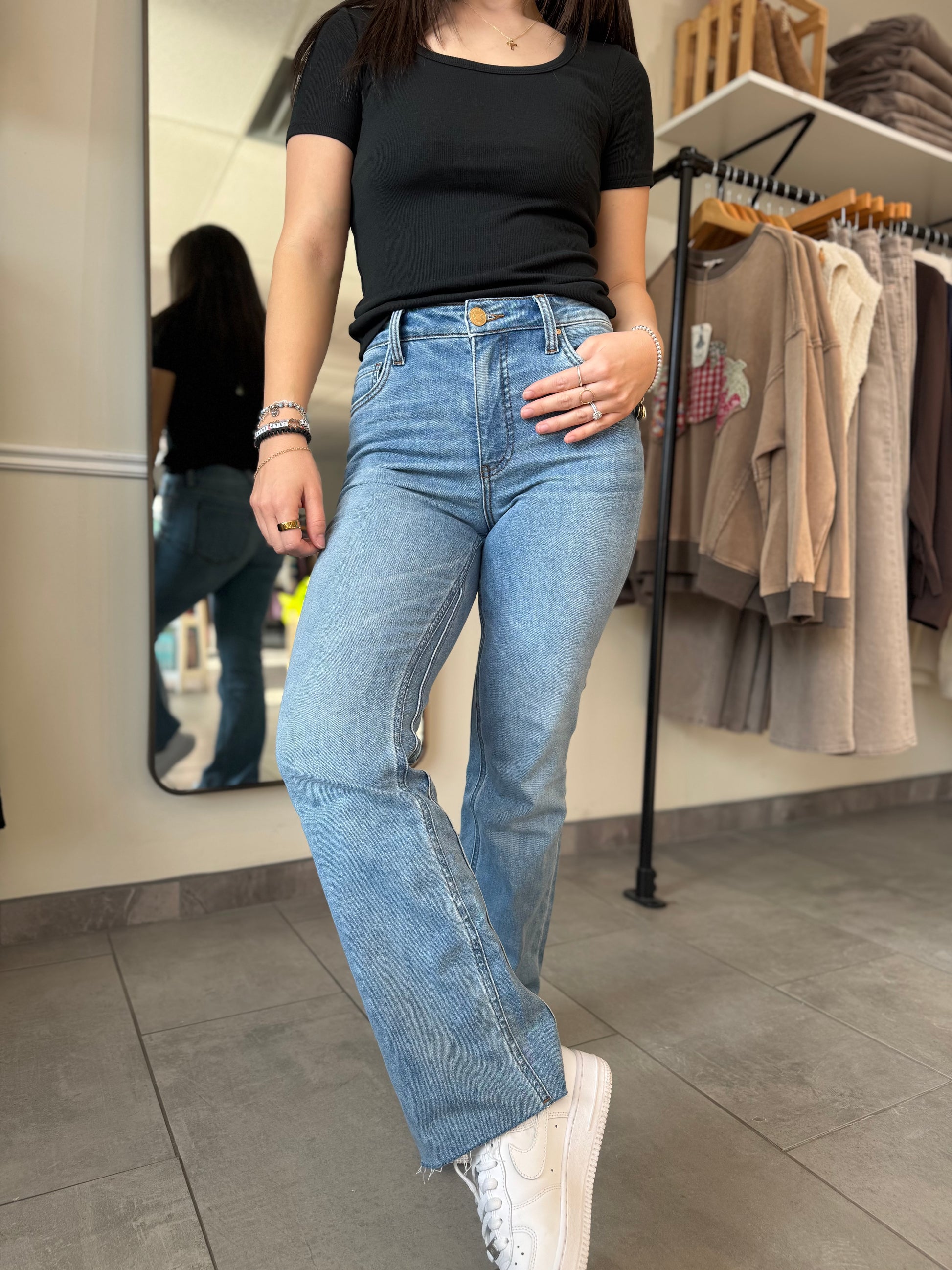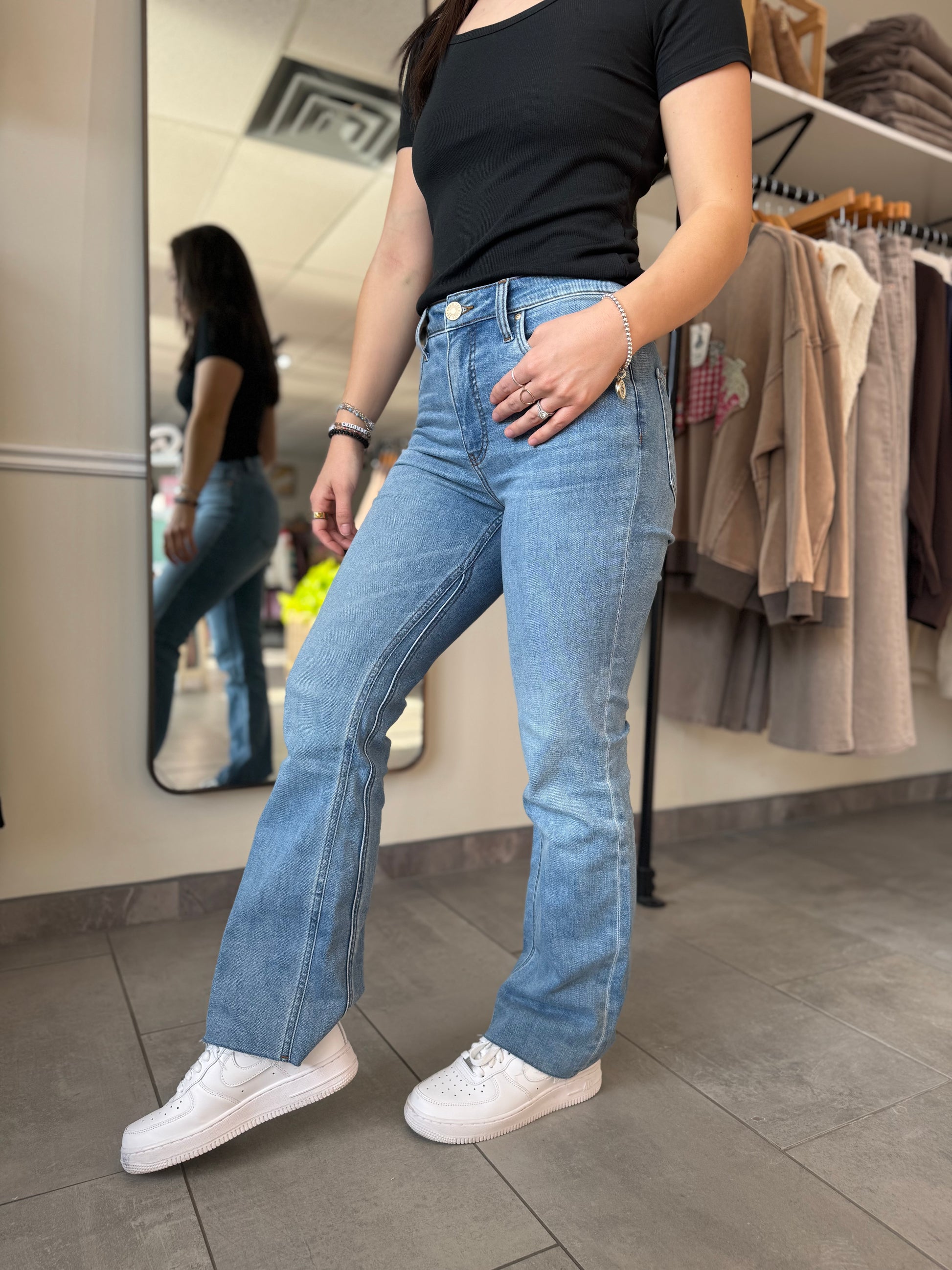 Pair the Kelsey High Rise Ankle Flares with sweaters, blouses, or graphic tees for an effortlessly chic look that works from day to night.