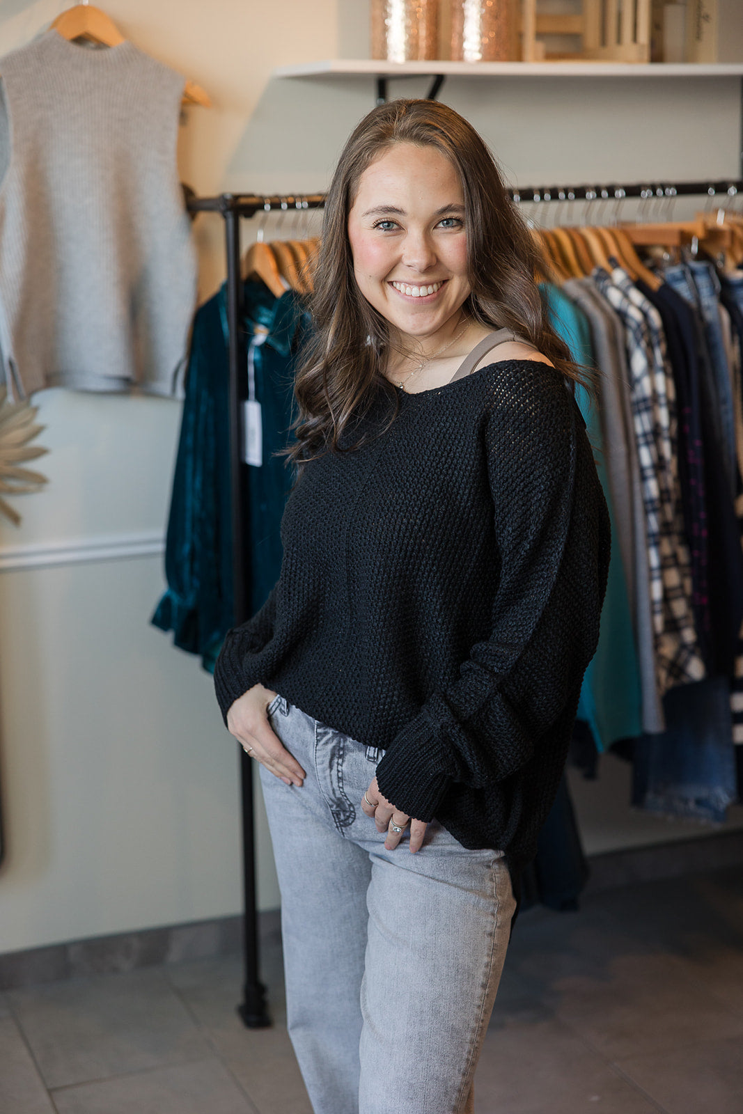 Textured knit sweater featuring a v-neckline, long sleeves, hi-lo hem & slit details on side, reverse-seam details throughout and a relaxed-fit. -Model is 5'9" and wearing a S/M