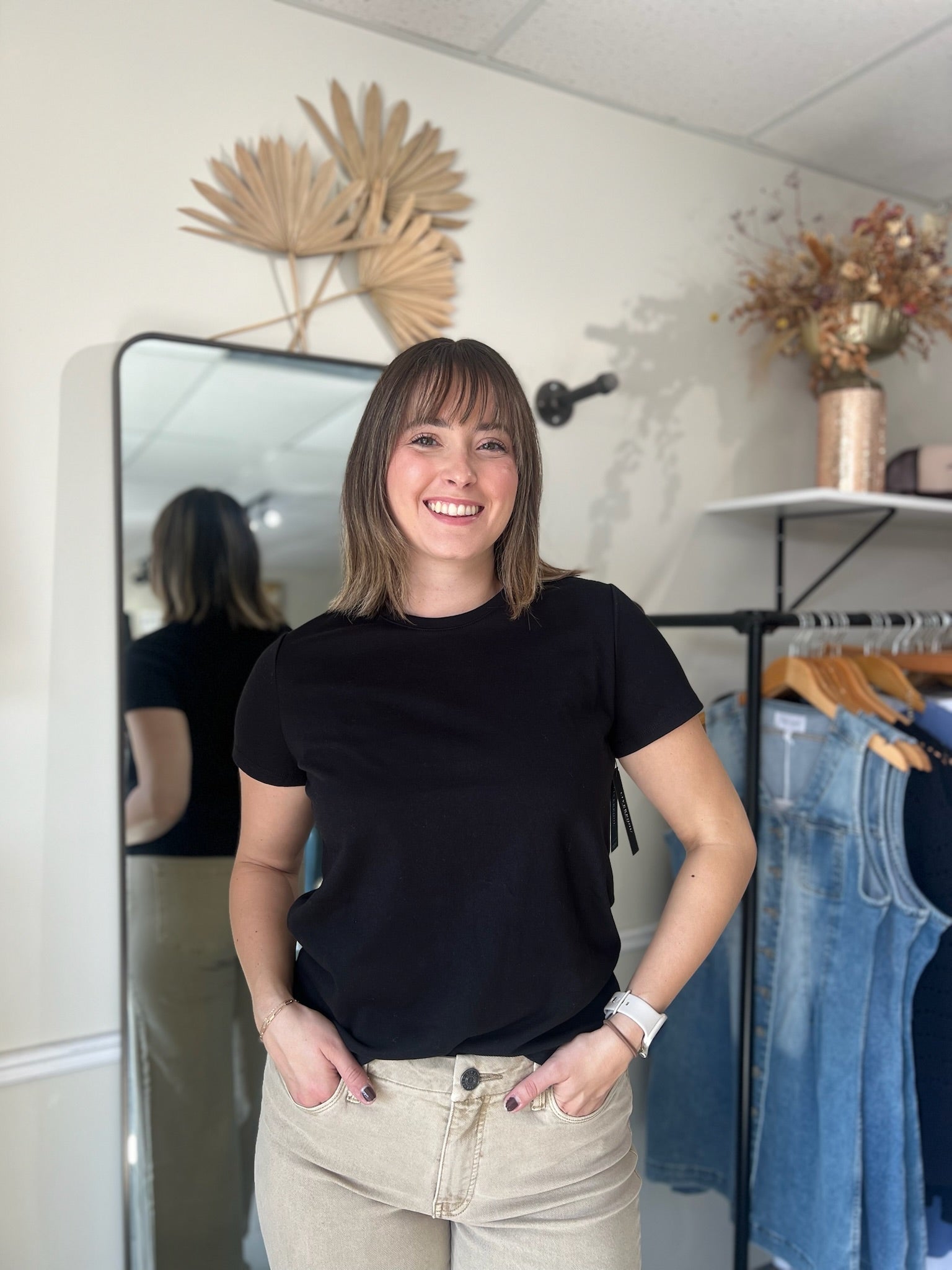 Our crew neck tee is a must! Super soft and made with 100% cotton, this tee is great for layering or worn on its own! The essential wardrobe builder made in our no-see-through jersey.