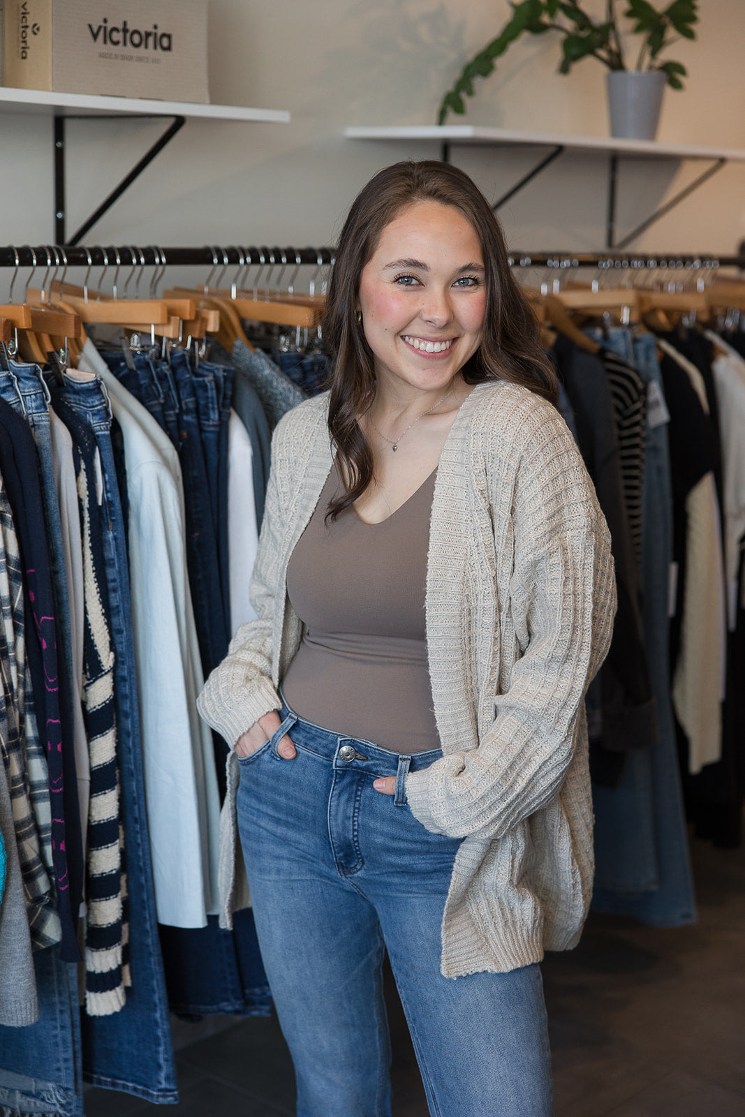 Get cozy with The Reggie Waffle Cardigan at Sweet P. This knit long-sleeve cardigan combines comfort and classic style. Its open front and pockets make it both practical and cute. The Reggie Waffle Cardigan keeps you stylish and is a wardrobe must-have.Â
